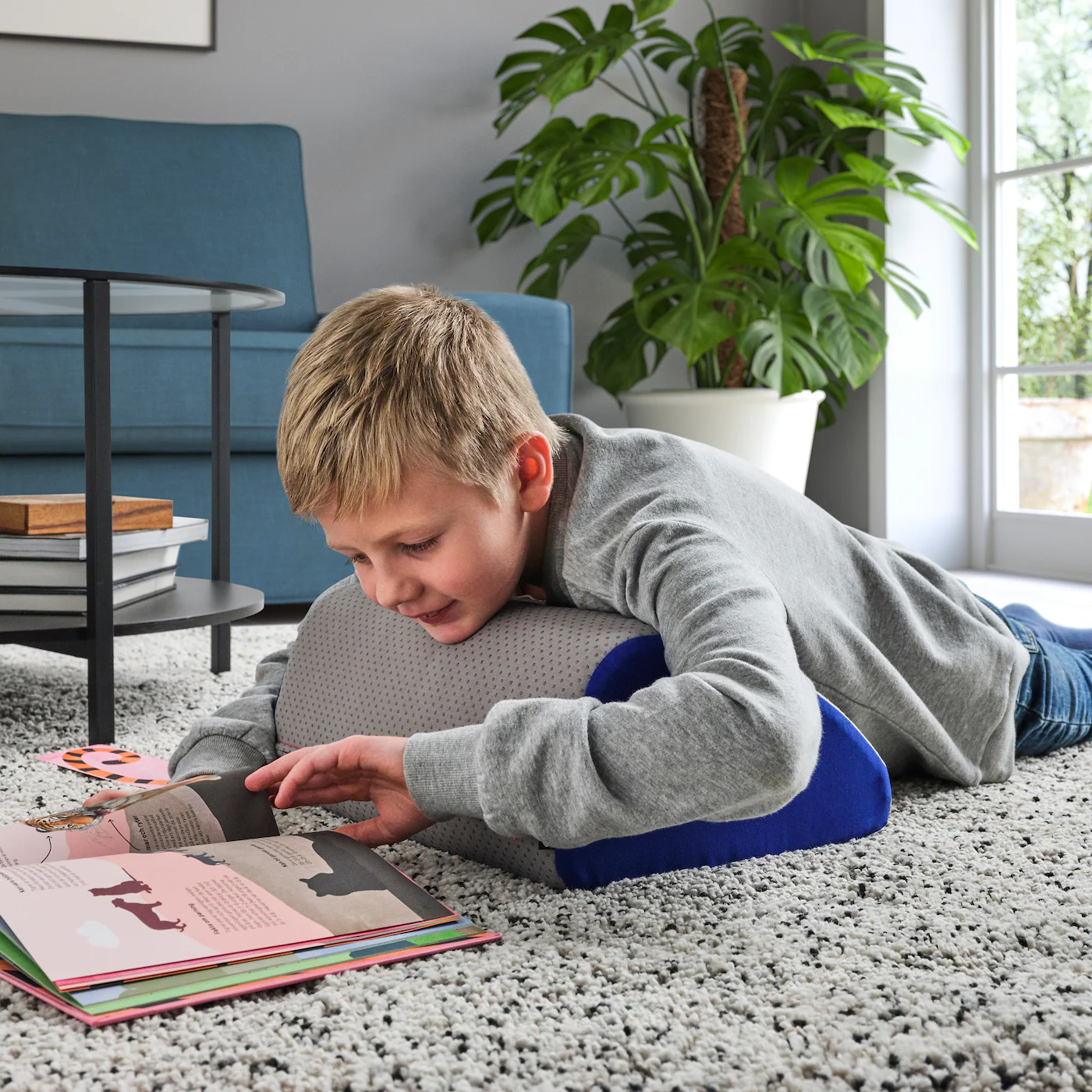 The curved surface encourages the child to rock with their feet in a completely natural way. Perfect to use in order to vary the working position by the desk or on the floor. Teenagers and adults can also use the footrest to support their lumbar region, knees or ankles. Working for extended periods in uncomfortable positions can lead to fatigue, discomfort and pain. An ergonomically adapted environment contributes to better health, creativity, concentration and learning. The cover can be removed and machine washed. The anti-slip surface of the textile cover keeps the footrest firmly in place. Lightweight and simple to move around. The ÖVNING collection comprises of smart and flexible tools that simplify learning in a fun way and help the child get started, keep their energy up and easily change workspaces. IKEA supports children’s right to education and an active life filled with play. By learning from children and experts, we know that a mix of study, play and movement is ideal for good school results.Material