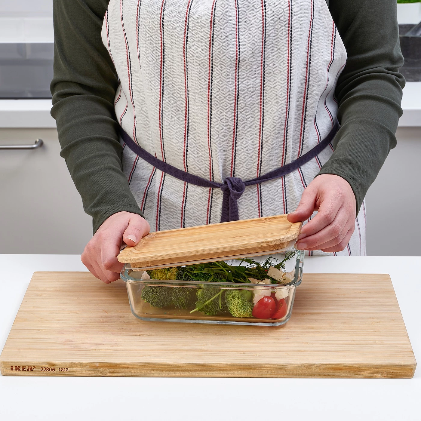 The natural bamboo creates a warm and vibrant look. The food container is made of oven-safe glass and can be used as an oven/serving dish. The transparent jar makes it easy to find what you are looking for, regardless of where it is placed.Material