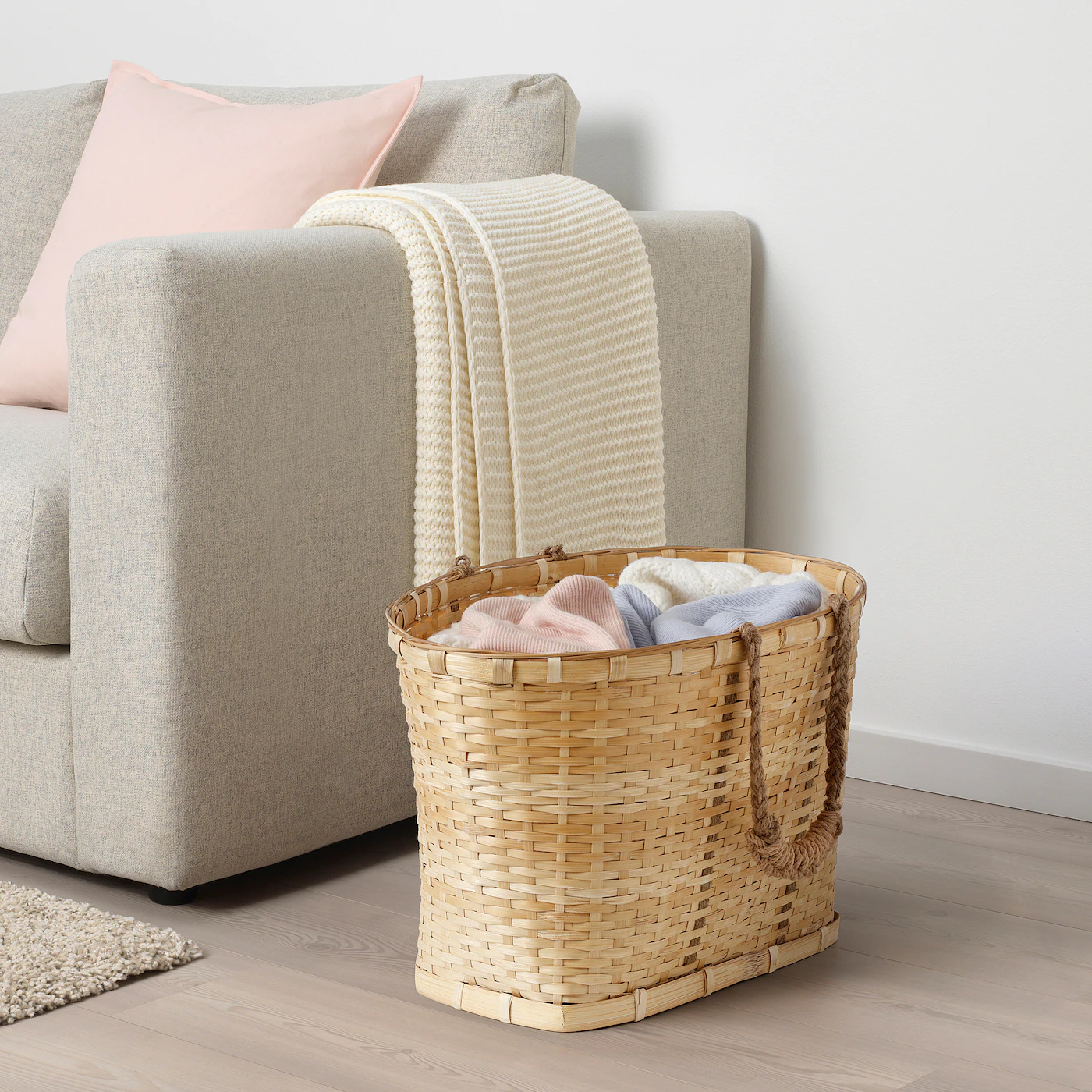 This bamboo basket is handwoven by skilled artisans, making each product unique. Made of bamboo, which is an easy-care, durable, natural material.Material