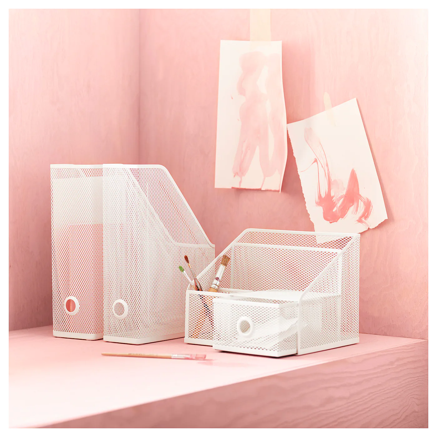 Easy to pull out and lift as the magazine file has a cut-out handle.