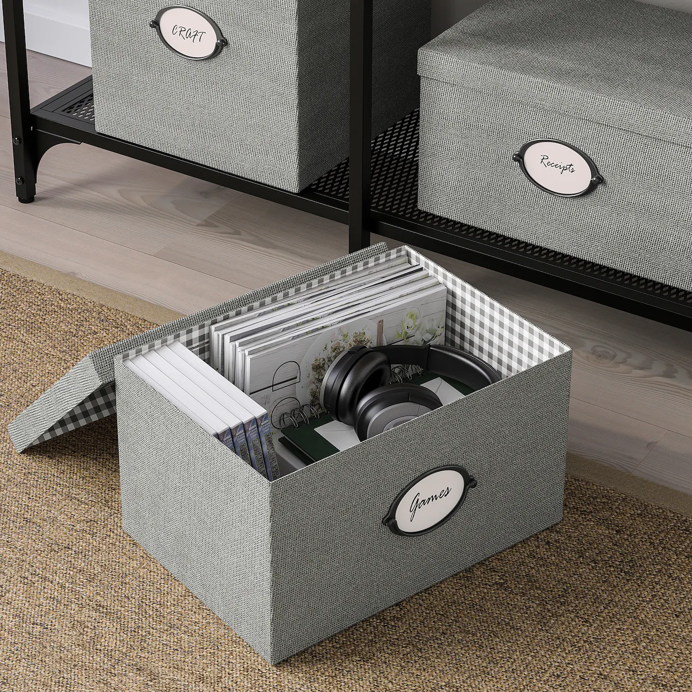 The box fits the HEMNES storage series and other furniture/storage furniture with shelves which are at least 10″ deep. A good size for everything from papers and collectables to shoes and clothes.Material