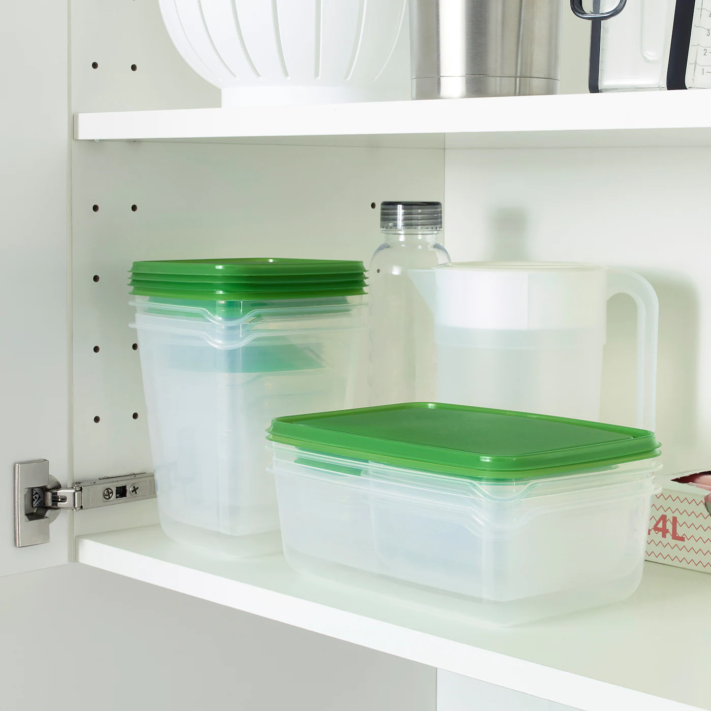 See contents without removing lid. Stackable to save space. 17 containers in 7 different sizes.Polypropylene