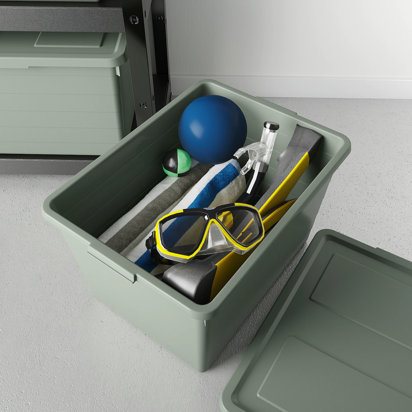 Fits well on the 19⅝” deep shelves in the IVAR storage series, and 15¾” deep shelves in the BOAXEL series, as well as in other storage with shelves that are at least 14″deep. The built-in locking function keeps the lid in place which protects the contents from dirt and dust. The contents are kept fresh since the lid’s design allows air to circulate, even when the box is closed. You can easily stack boxes of different sizes, as they’re made to fit each other. You can easily organize your things since there are two small areas you can write on or attach labels to.Material