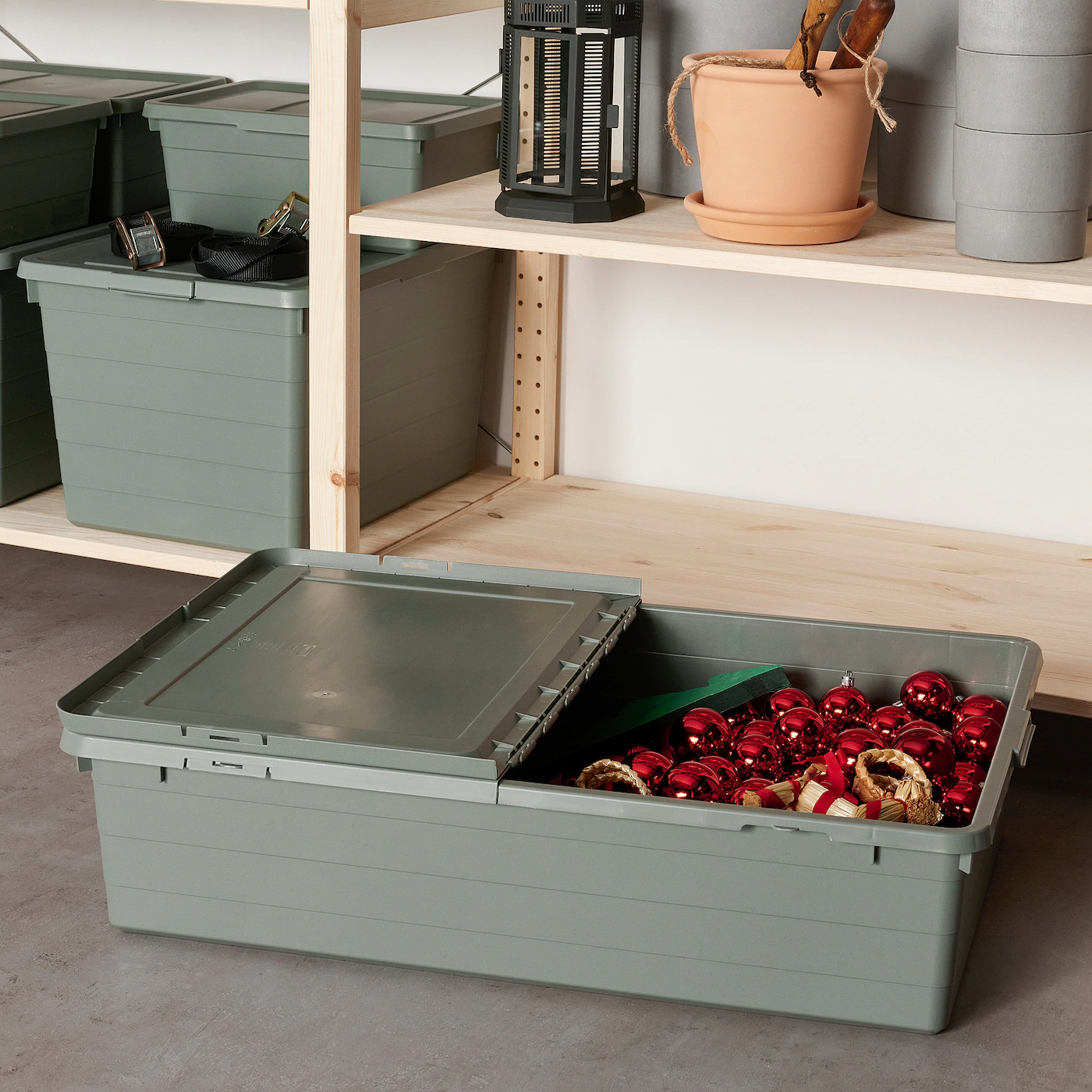 The lid is in two parts so you don’t need to pull out the box completely to open it and access your things. The built-in locking function keeps the lid in place which protects the contents from dirt and dust. You can easily organize your things since there are two small areas you can write on or attach labels to.Material