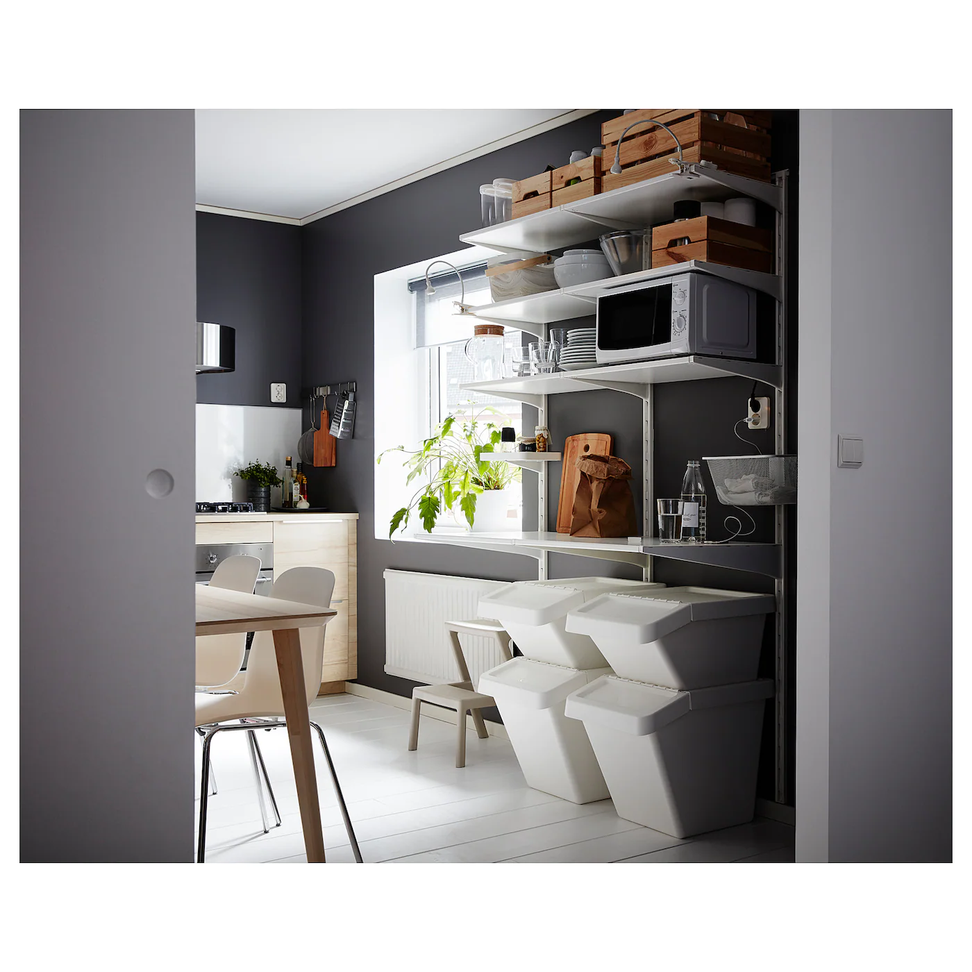 You can easily access the contents of a bin, even when stacked, because it has a folding lid.