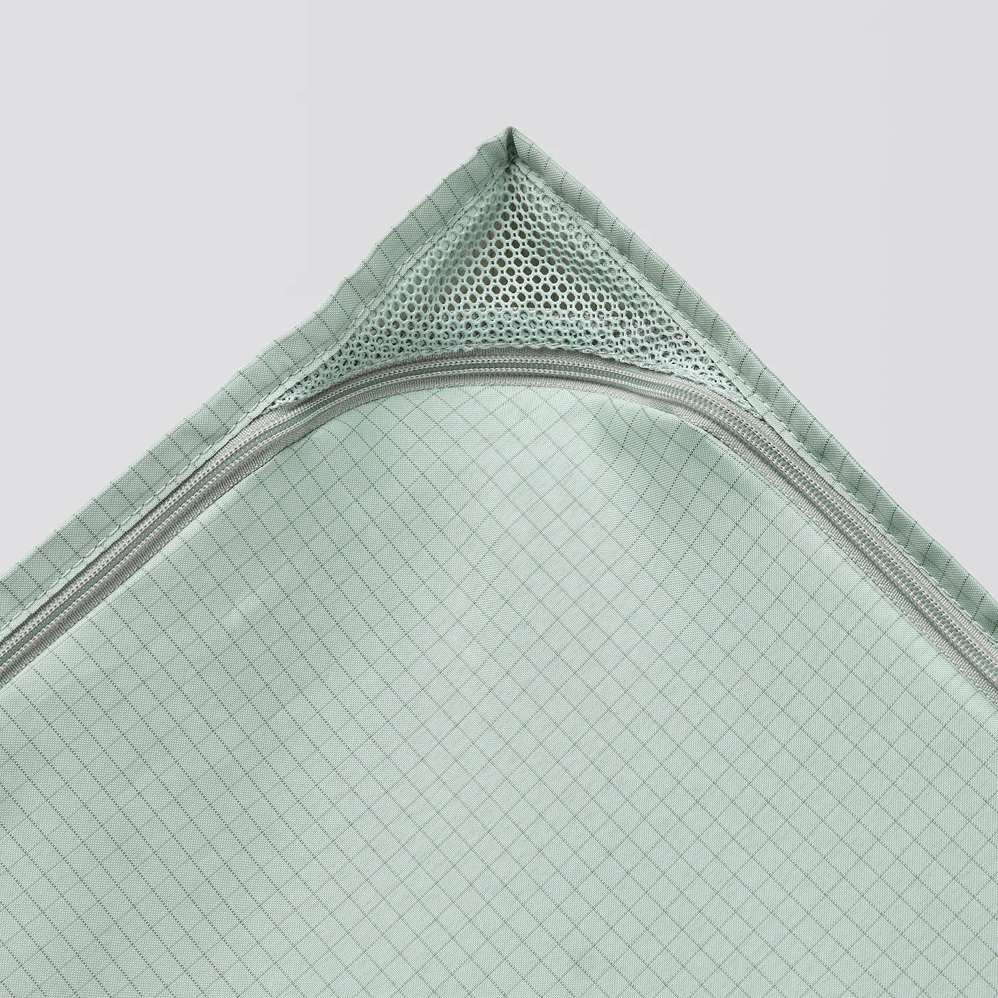 Your stored clothes and textiles stay fresh longer, as ventilation nets in the corners allow air to circulate. The label holder makes it easy to mark and find what you are looking for. Easy to pull out as the storage box has a handle.Material