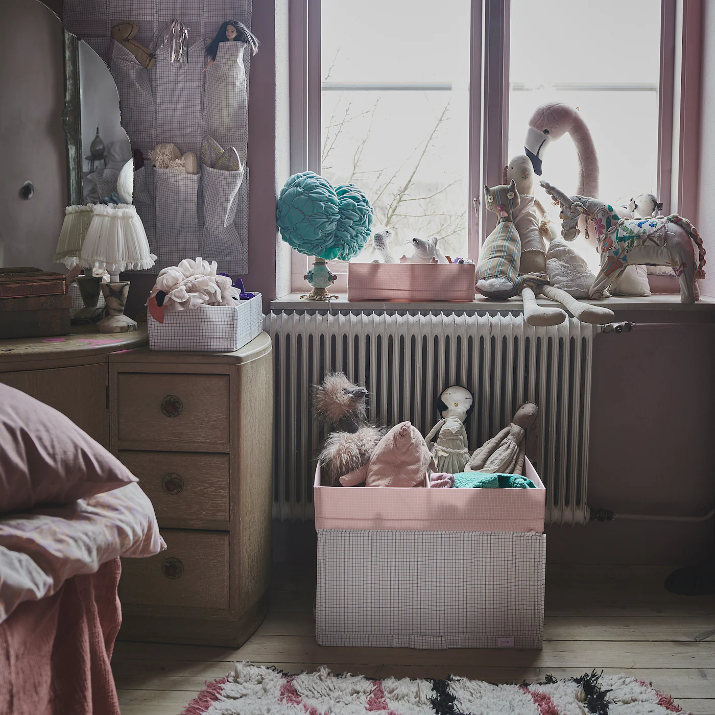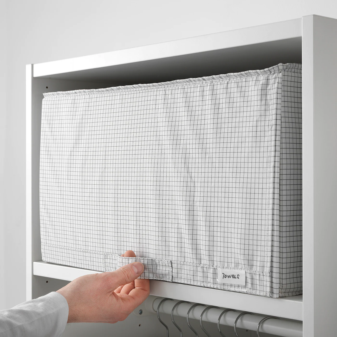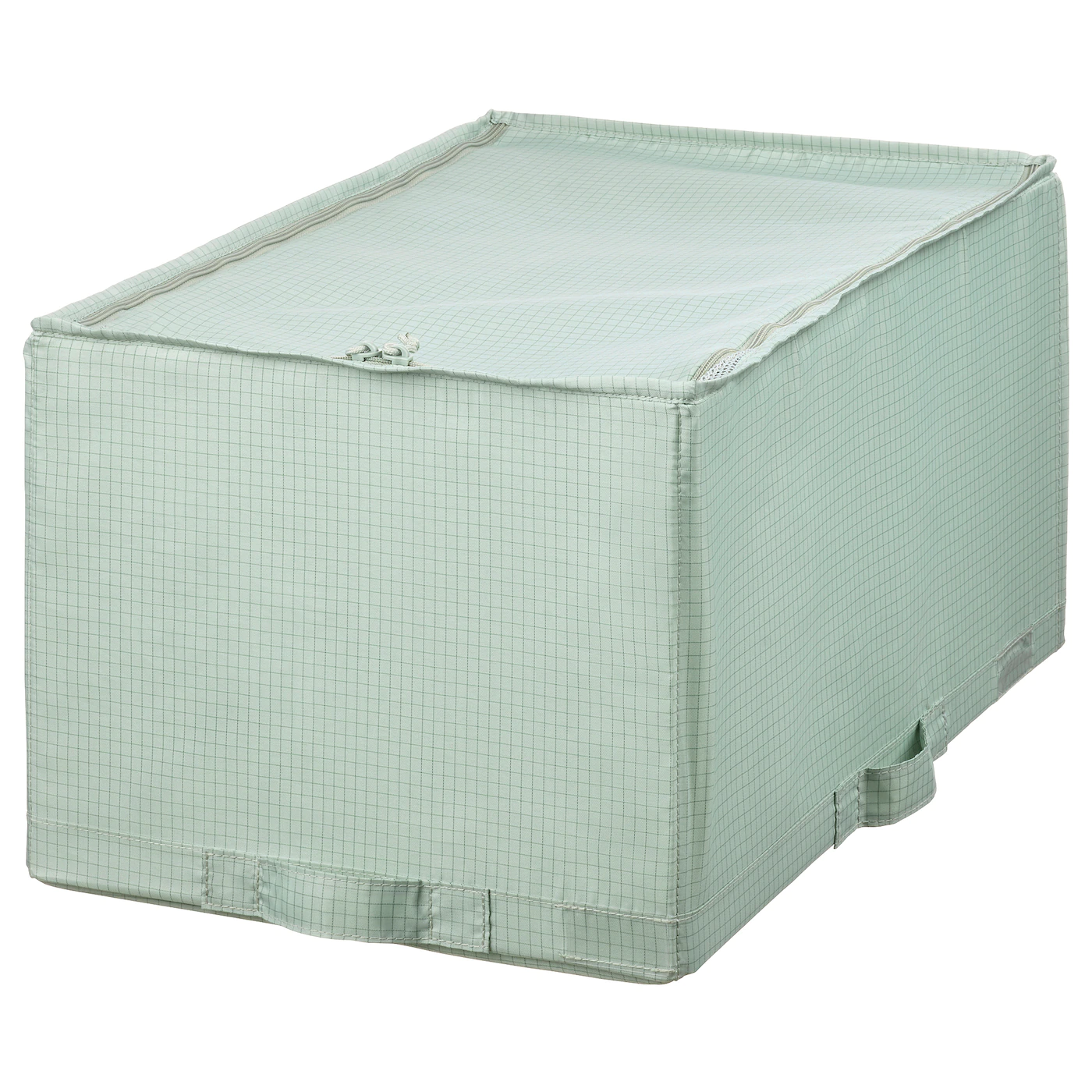 Your stored clothes and textiles stay fresh longer, as ventilation nets in the corners allow air to circulate. The label holder helps you organize and find your things. Easy to pull out and lift as the box has handles.Material