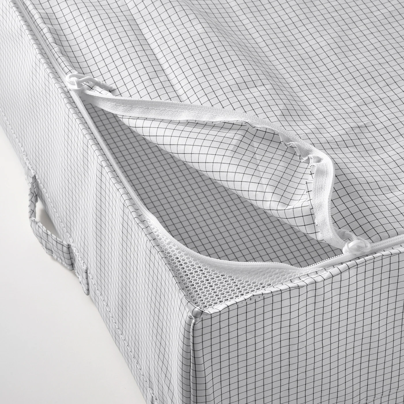 Protects your clothes from dust. Your stored clothes and textiles stay fresh longer, as ventilation nets in the corners allow air to circulate. The label holder helps you organize and find your things. Easy to pull out and lift as the box has handles.Material