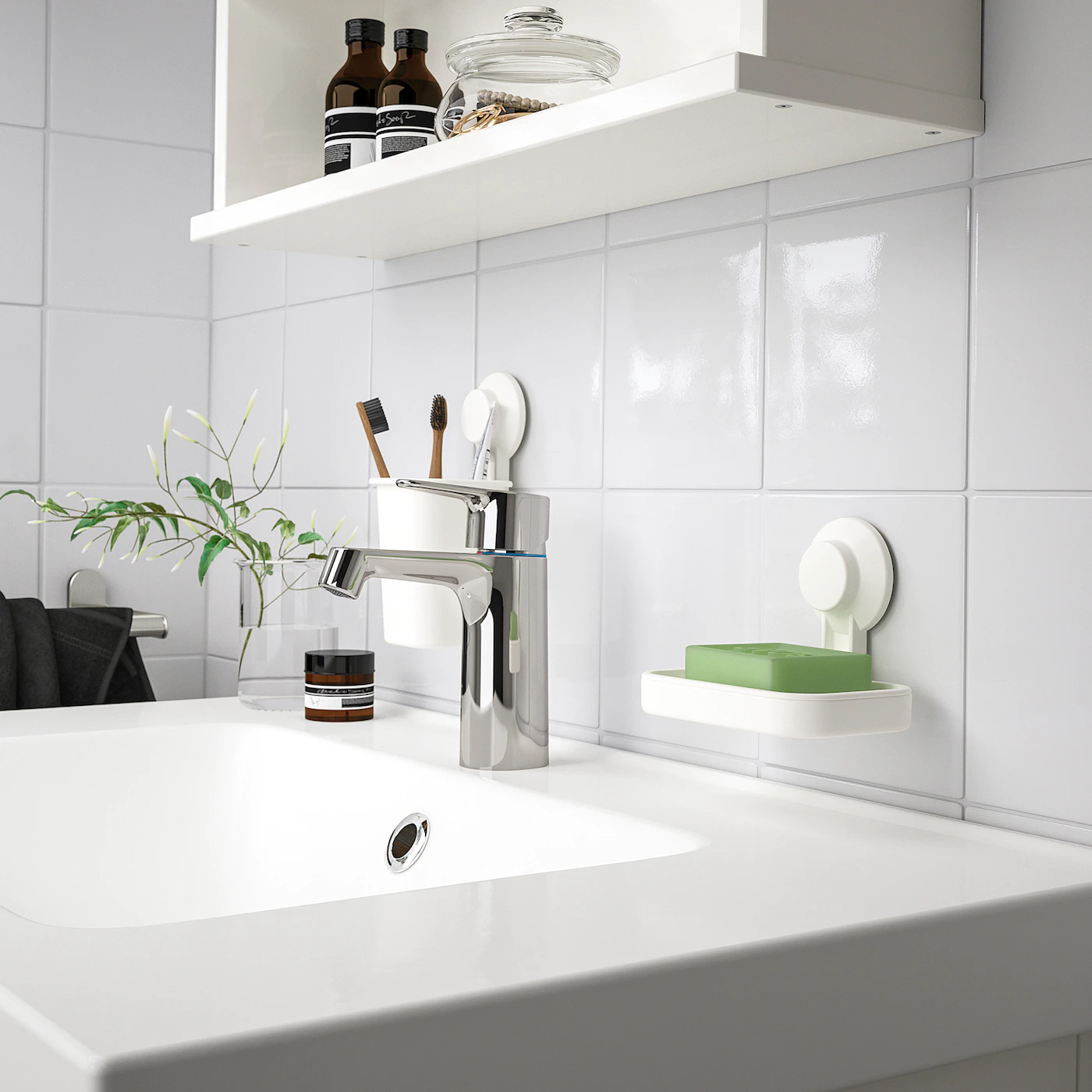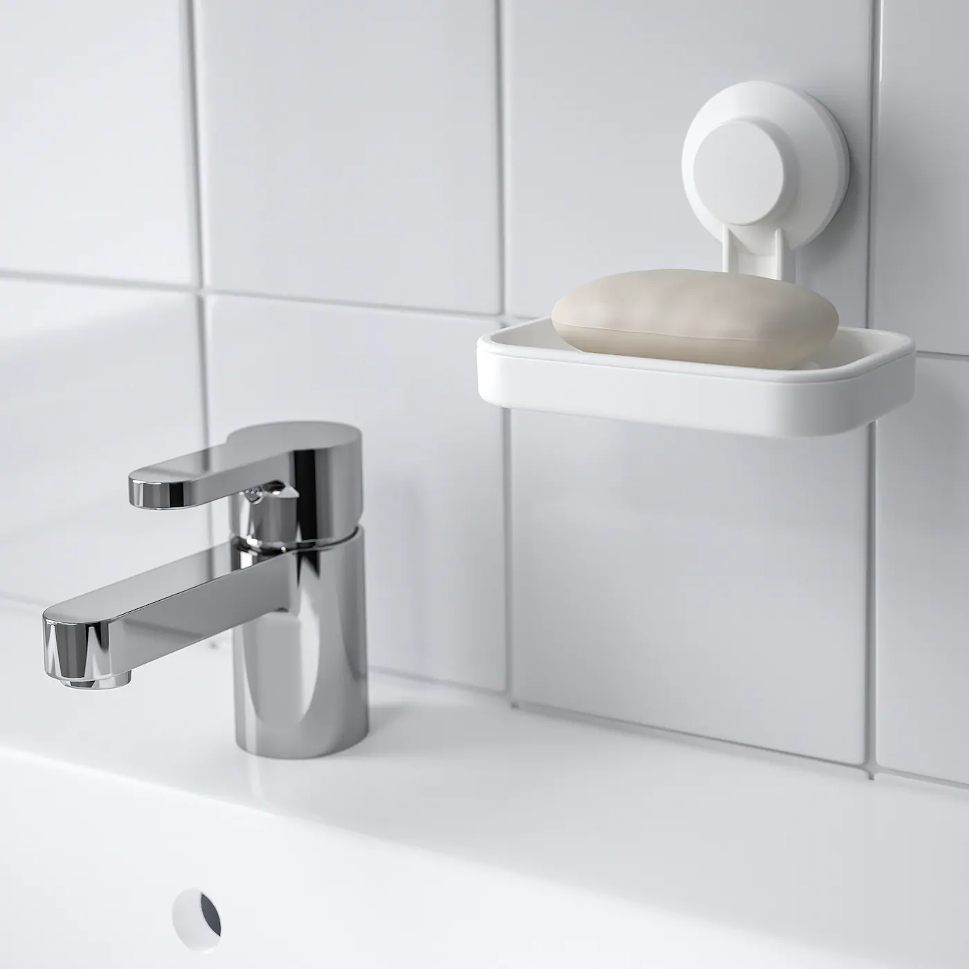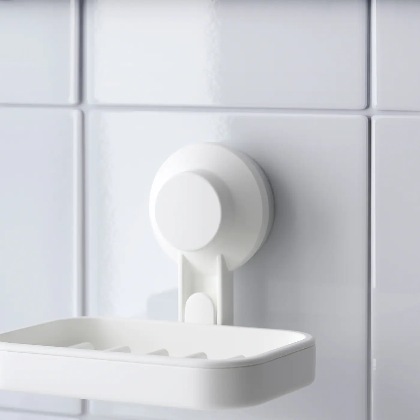 One push assembly – clean the wall surface and push to attach. No tools are needed. To release and remove, insert a credit card (or similar) between the suction cup and the wall. No ugly holes or marks are left behind. The suction cups have a tight grip on smooth surfaces like glass or tiles. Perfect for soap, but also jewelry or other small items that easily disappear.Material