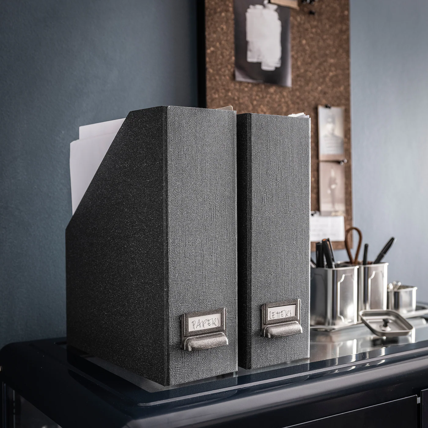 In this magazine file you can sort and hide everything from magazines and bills to the first drawings by your children. It’s also easy to move if you want to reorganize the bookcase.