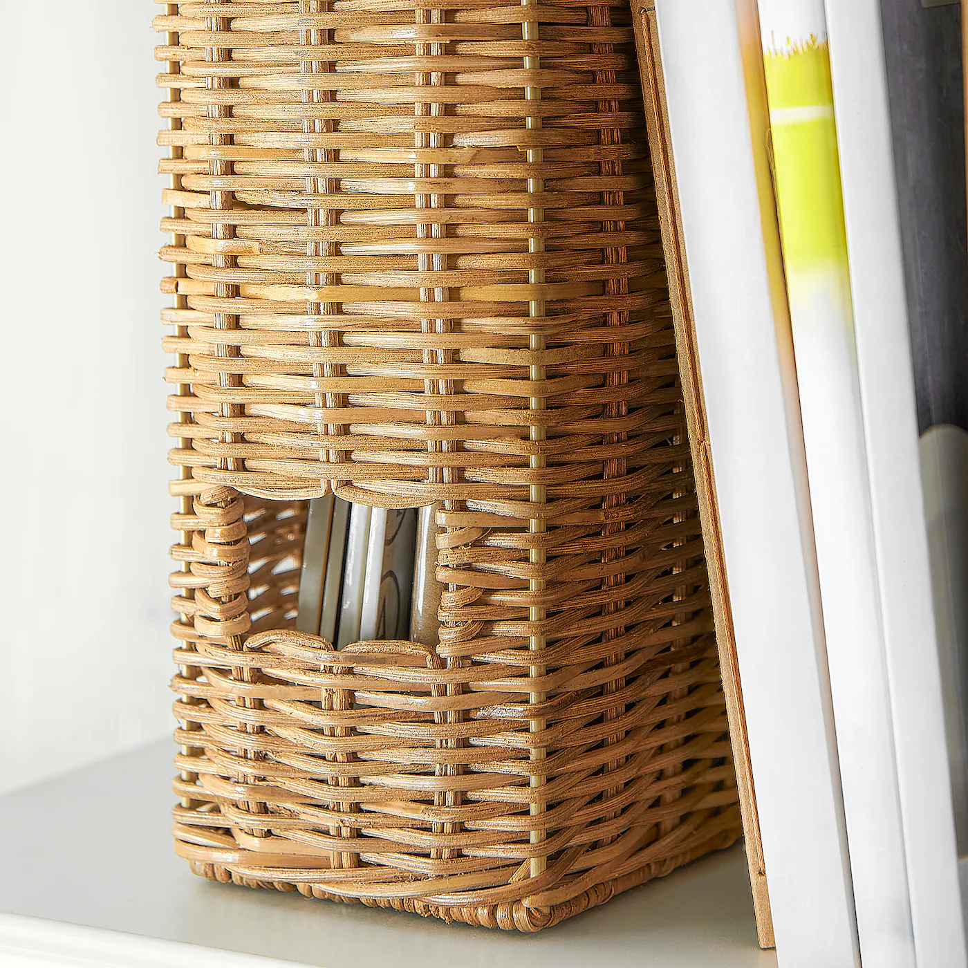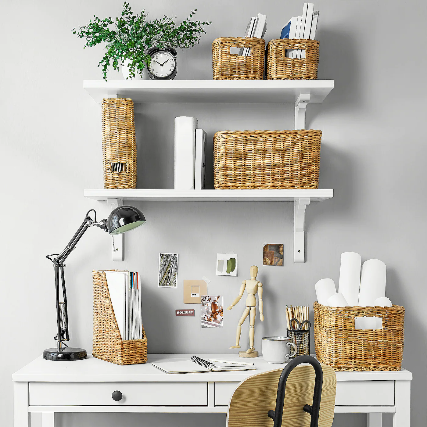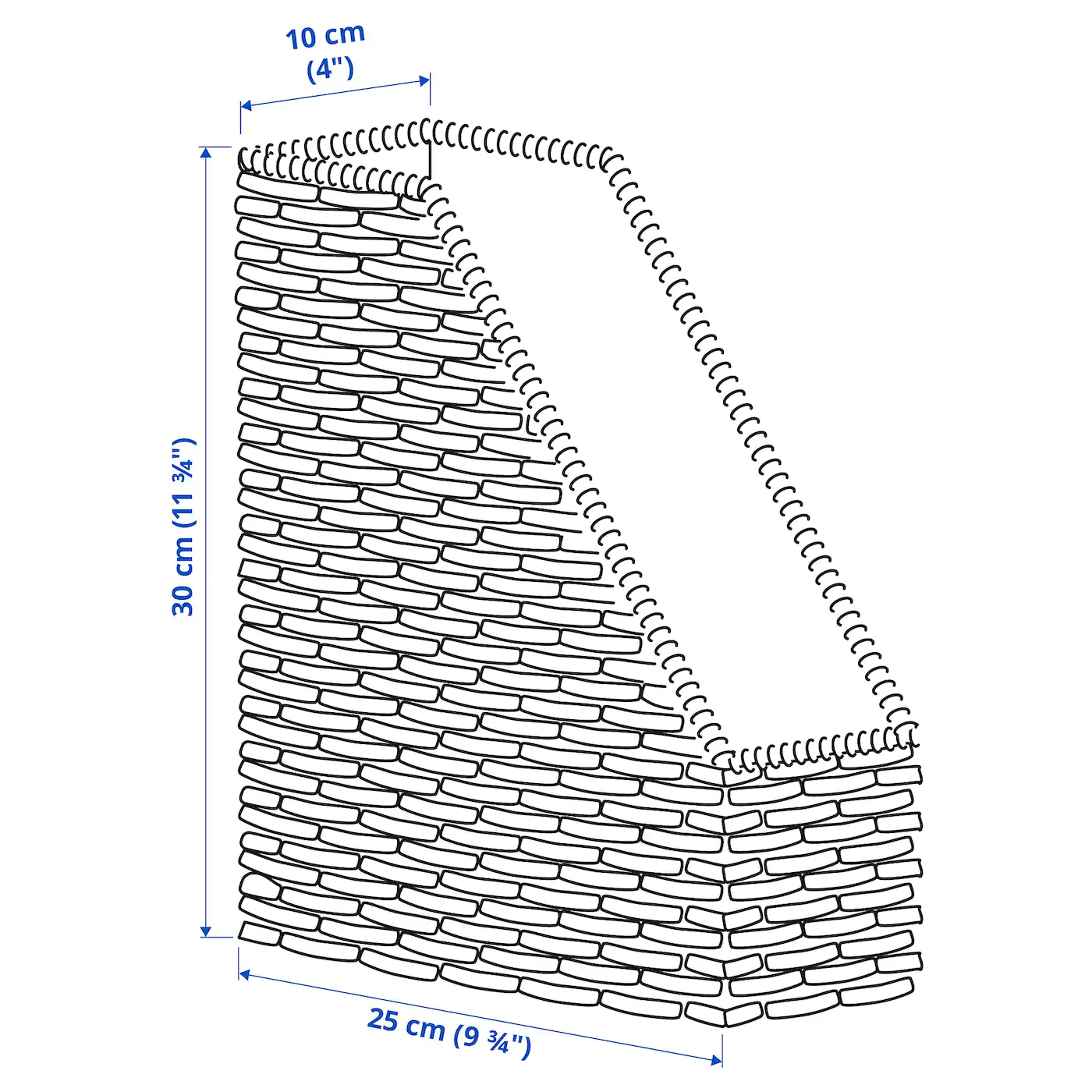 Easy to pull out and lift since the magazine file has a hole in the tall side. Designed for storage of letter size paper. Let nature help you store things that you want close at hand, but not always visible.Material
