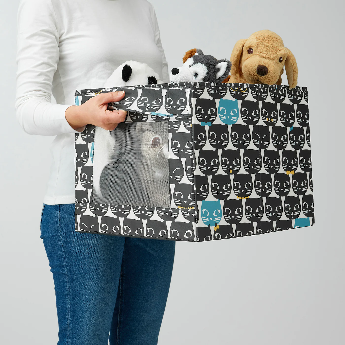 Fits perfectly in SMÃ…STAD storage system or as a freestanding box for small things or clothes. You can quickly see what’s inside the box thanks to the mesh front. The box is made of polyester, of which at least 90% is recycled – a durable material which is tested, approved and free from harmful substances and additives. Easy to pull out, lift and carry since the box is made of lightweight textiles and has handles on the short sides. Can be folded to save space when not in use. If the box gets dirty, you can wash it by hand in cold water, 85°F.Material
