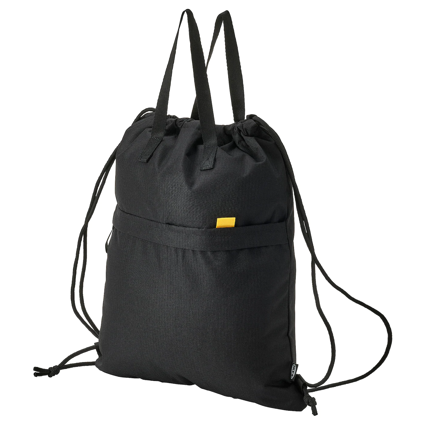 If you want to carry the backpack in your hand, you can remove the shoulder straps and put them in the compartment on the back. On the front there are two compartments with zippers – perfect for a cell phone, wallet or anything else you want close at hand. Inside there is one large compartment for clothes, shoes and a toiletries bag as well as two mesh compartments where you can have smaller things like cables or an eyeglasses case. Easy to pack since you can open and fold out the entire top, just like a suitcase. Comfortable to carry as the backpack is padded in the back. The striped key chain on the front is removable – smart if you want to use it for your own keys or attach it to another bag.Material
