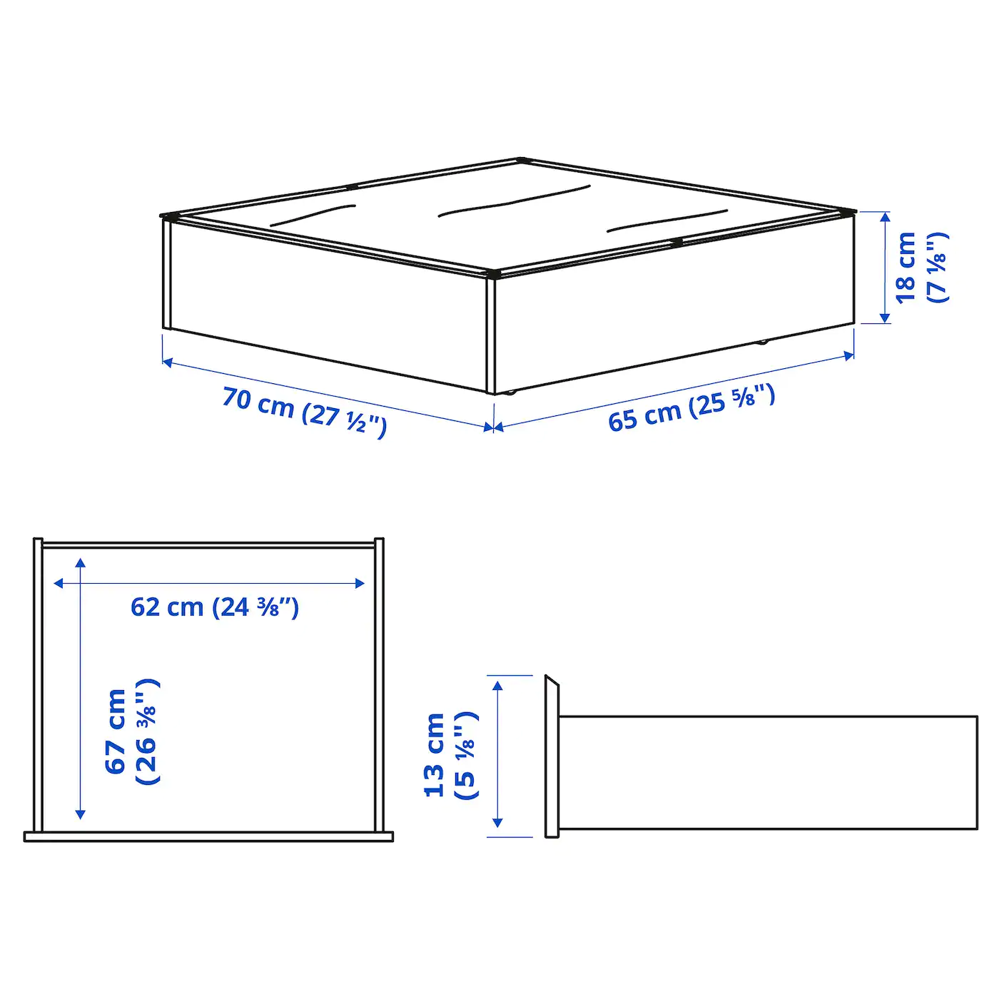 Keep your belongings dust-free; just fasten the fabric lid with the poppers. The storage box is easy to roll out and in thanks to the castors on the base.Material